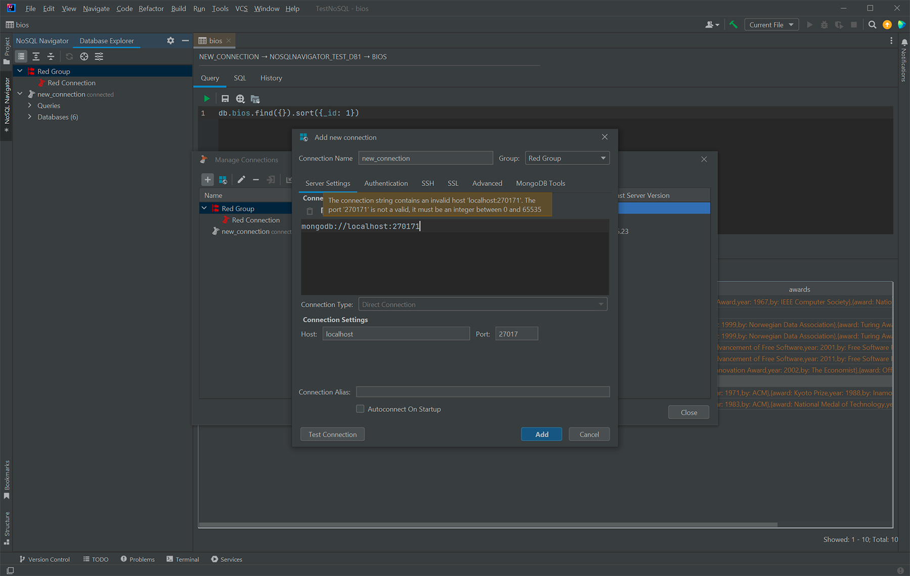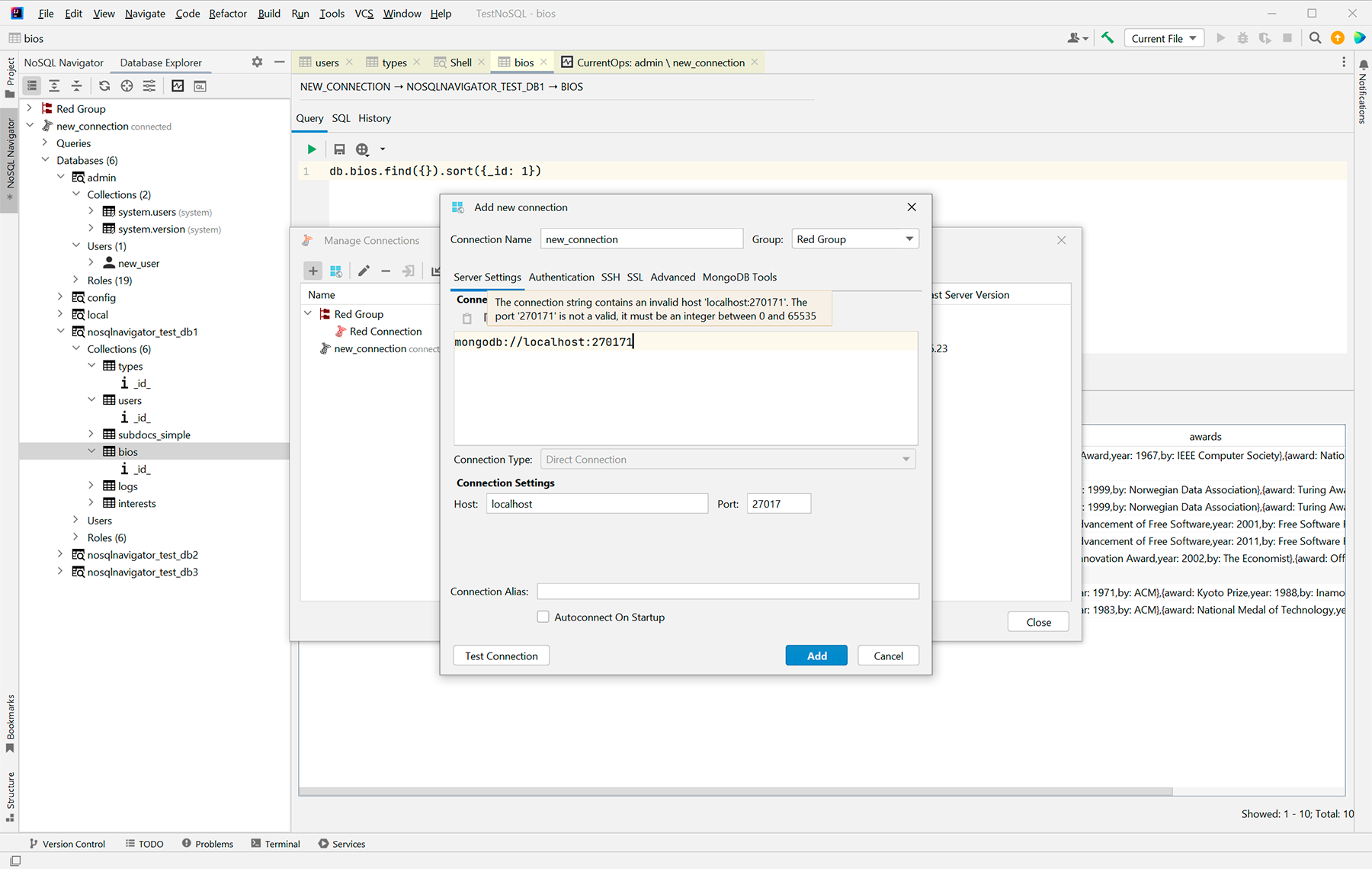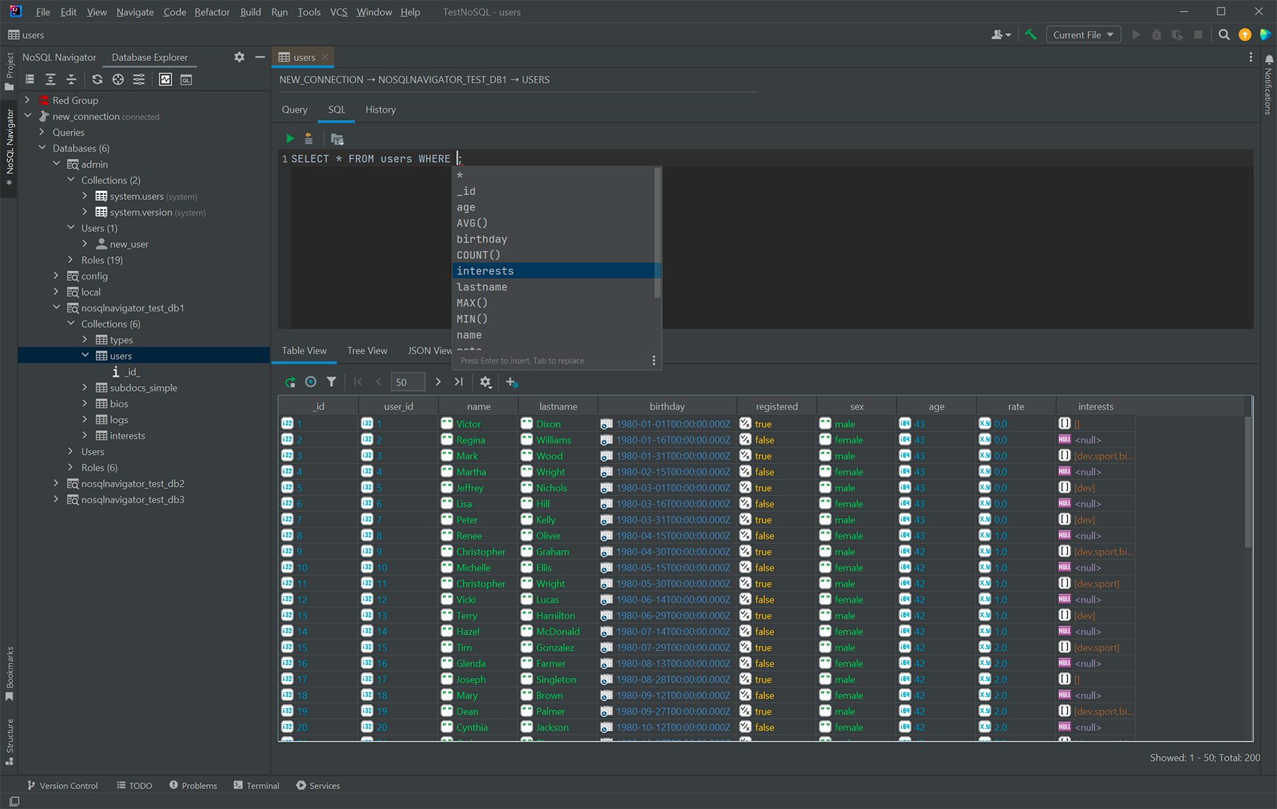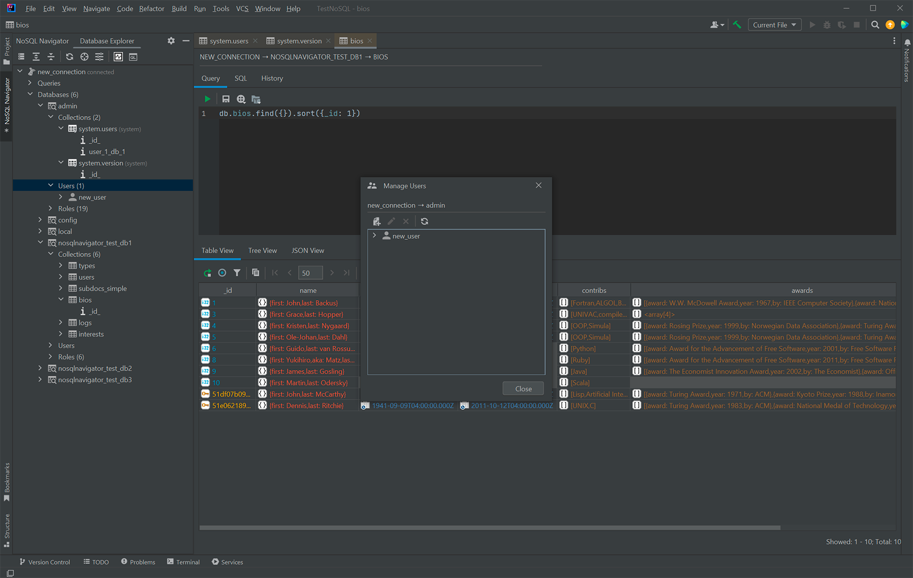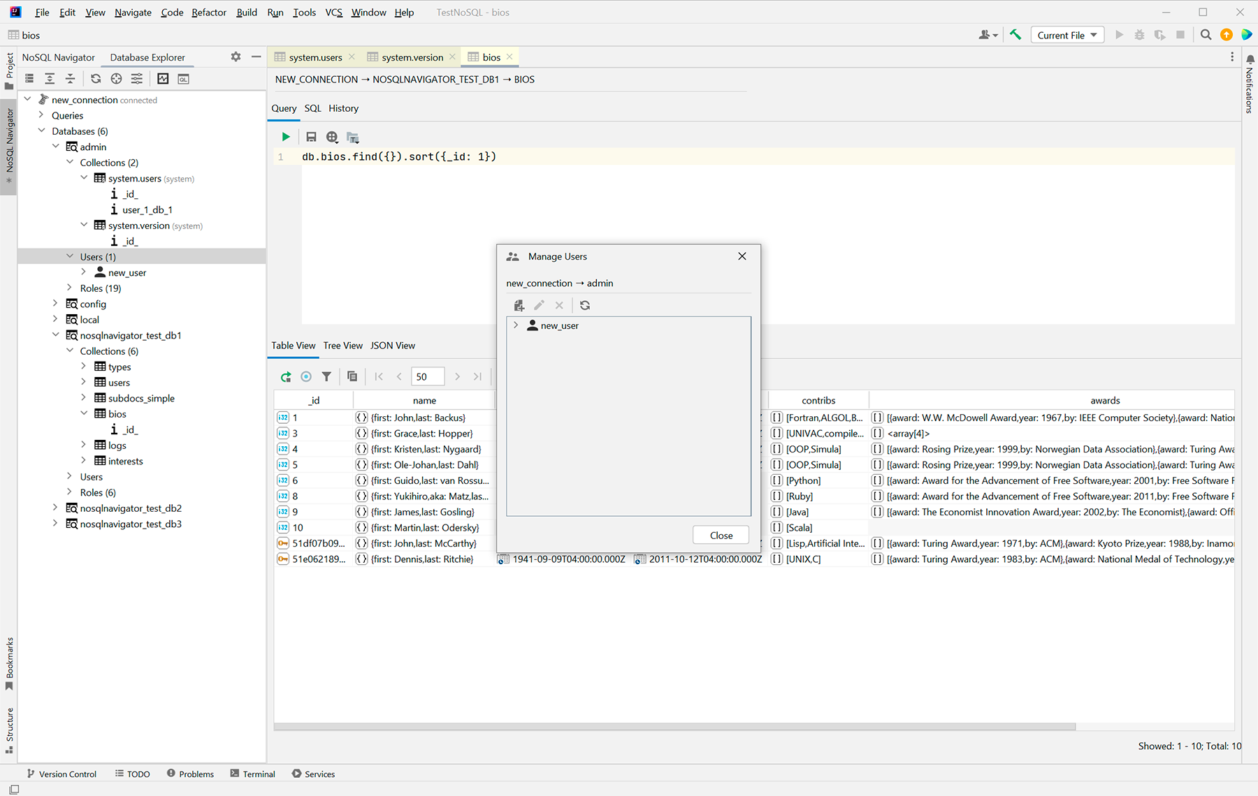 This is the official page of an advanced plugin for JetBrains IDEs. NoSQL Navigator for MongoDB accelerates your management of MongoDB with faster data exploration, query code competition, SQL to mongo query converting, and more.